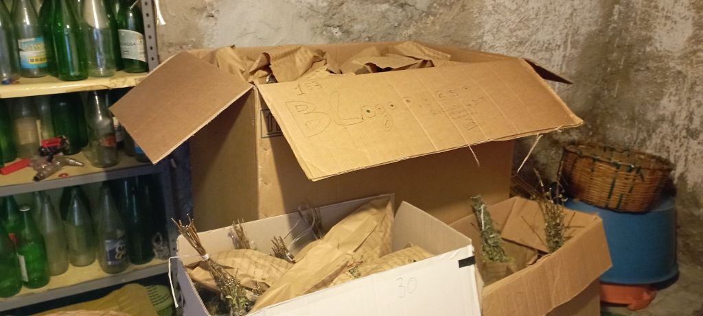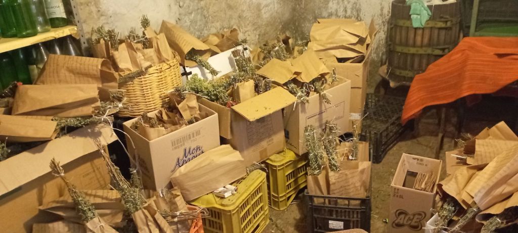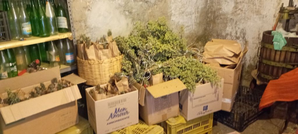 L’origano è stato raccolto in piena fioritura è conservato appeso in un locale al buio per circa una quarantina di giorni ,viene in bustato