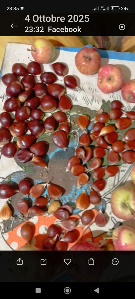 Le castagne più grosse che vedrete nella foto non sono del mio fondo sono castagne come si sul dire (aracquatizze),mentre quelle piccoline sono le castagne del mio albergo di reggila