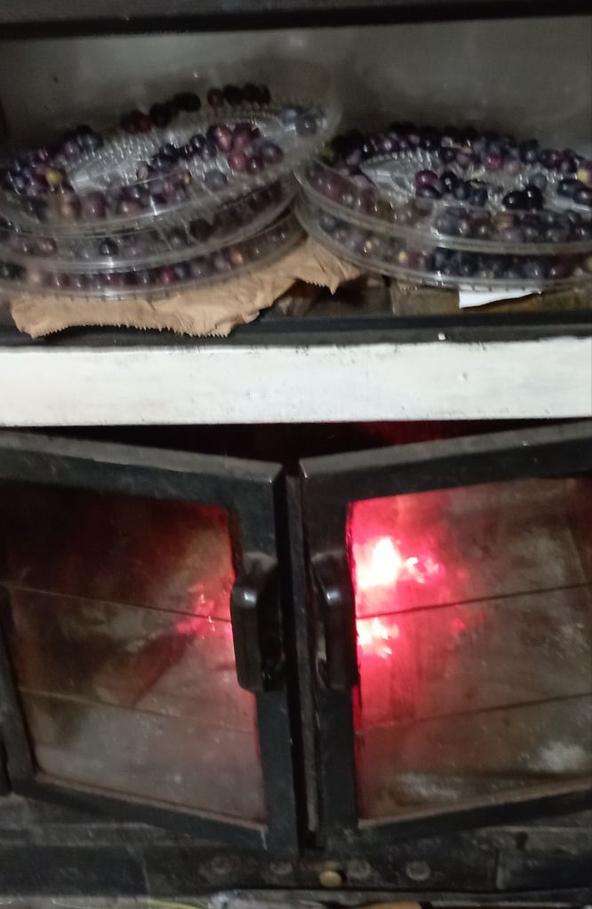 Queste sono le prime che ho raccolto dovevano restare ancora un po’ e farsi più nere comunque ho iniziato a essiccare quest’anno il metodo è cambiato mentre lo scorso anno le ho asciugata nel camino del focolare come